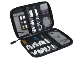5 STAR REVIEW: “This is such a nice organizational tool. Pull it out and impress your fellow travelers. It so easily keeps cords untangled and you can always find your small electronics quickly.”